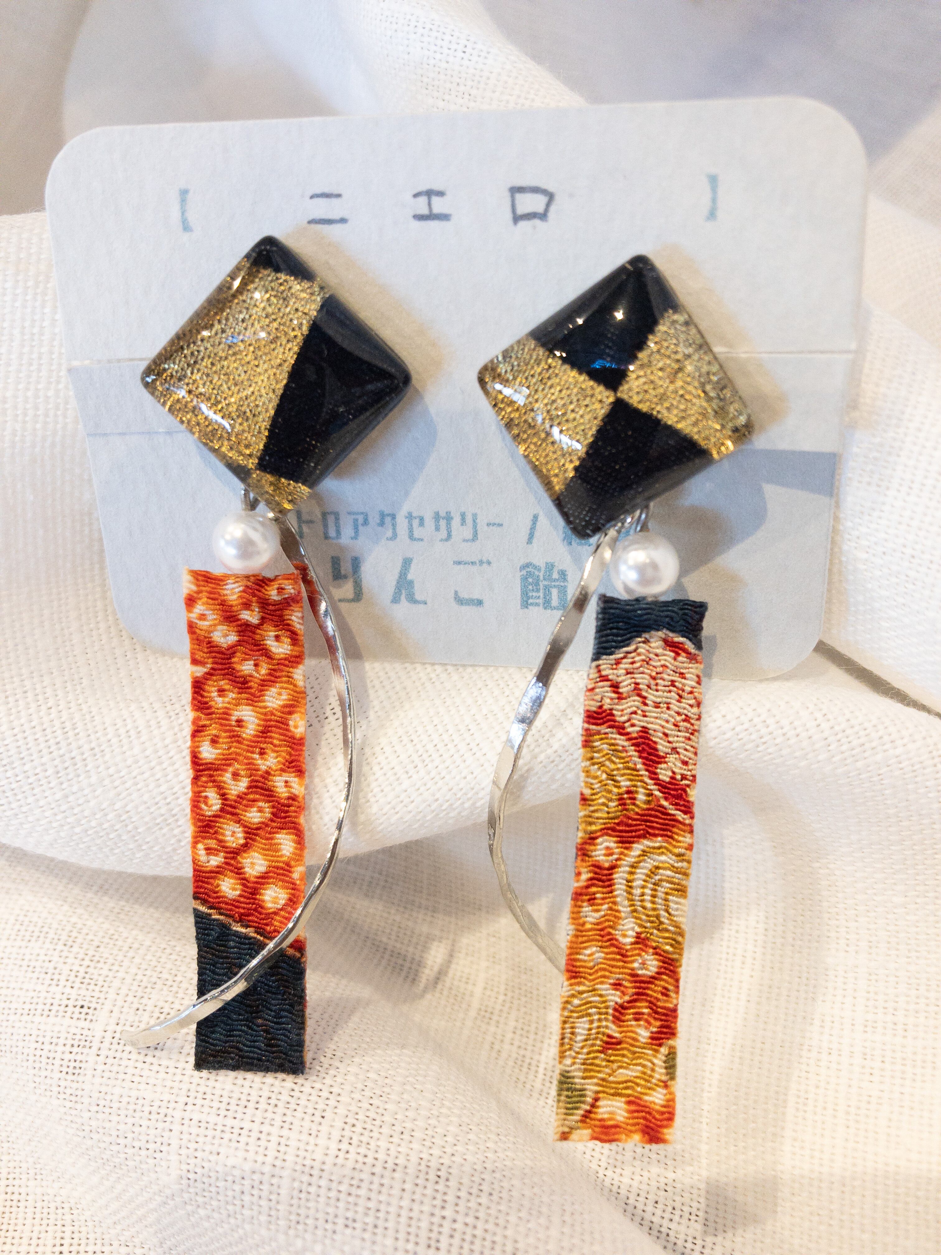 愛媛のちりめん生地や帯生地をハンドメイドでアップサイクルしたアクセサリー。