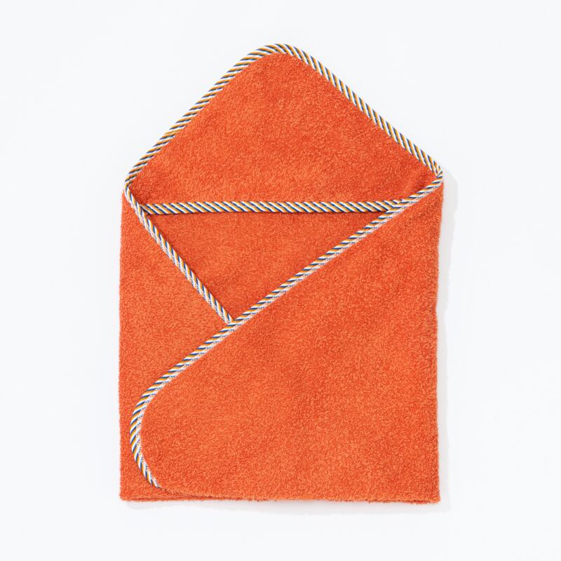 フード付きで頭からすっぽりと被せ、湯上りの赤ちゃんを冷やさずに優しく包み込みます。